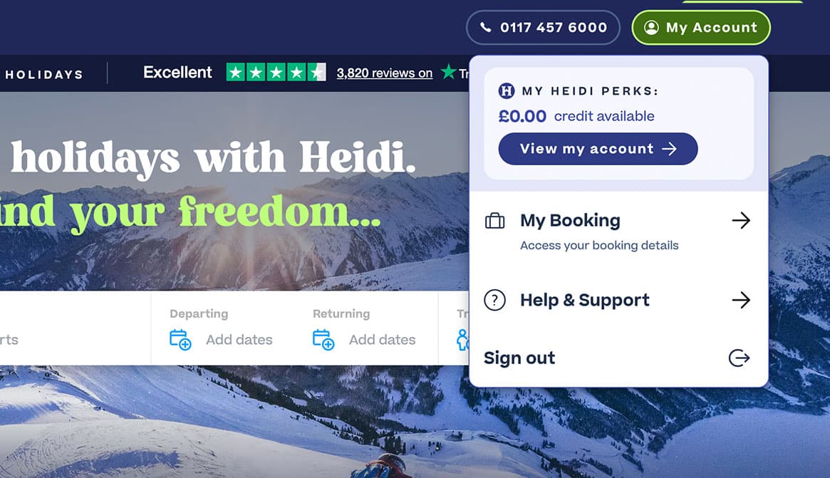 If you weren't the 'lead booker' on a previous Heidi trip, but have been on a Heidi holiday, just call us on 0117 457 6000 and we will help you from there.